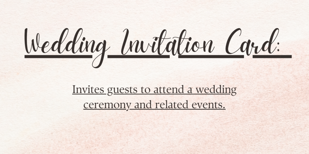 Wedding Invitation Card: Invites guests to attend a wedding ceremony and related events.